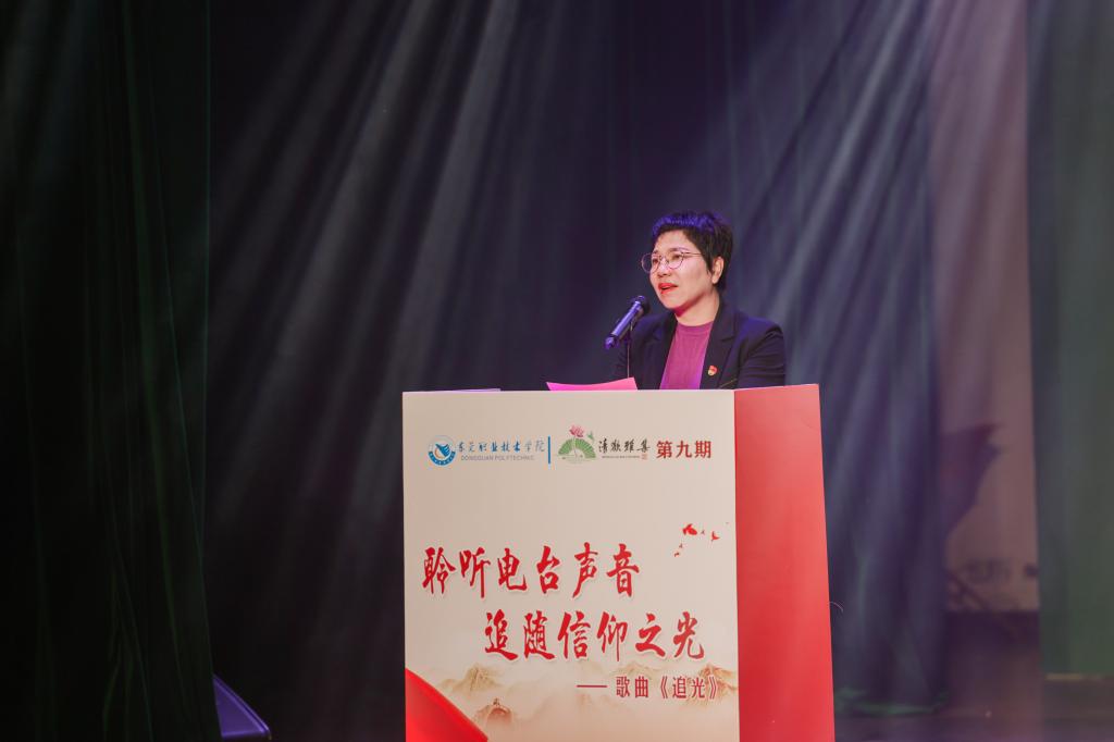 11月19日下午,由校党委党校、党委组织部主办,电子信息学院党总支承办,校团委协办的“清欢雅集”第九期党建文化活动“聆听电台声音,追随信仰之光——歌曲《追光》”主题音乐党课在修远楼梦想剧场举行。广东创新科技职业学院党委书记邓成良、东莞理工学院集成电路学院党委书记任斌、广东医科大学生物医学工程学院党委书记邓海滨、广东酒店管理职业技术学院党政办副主任赵荣涛等企业、院校嘉宾以及我校校领导、中层干部、各党总支支委、党支部书记、学生代表参加了此次音乐党课。