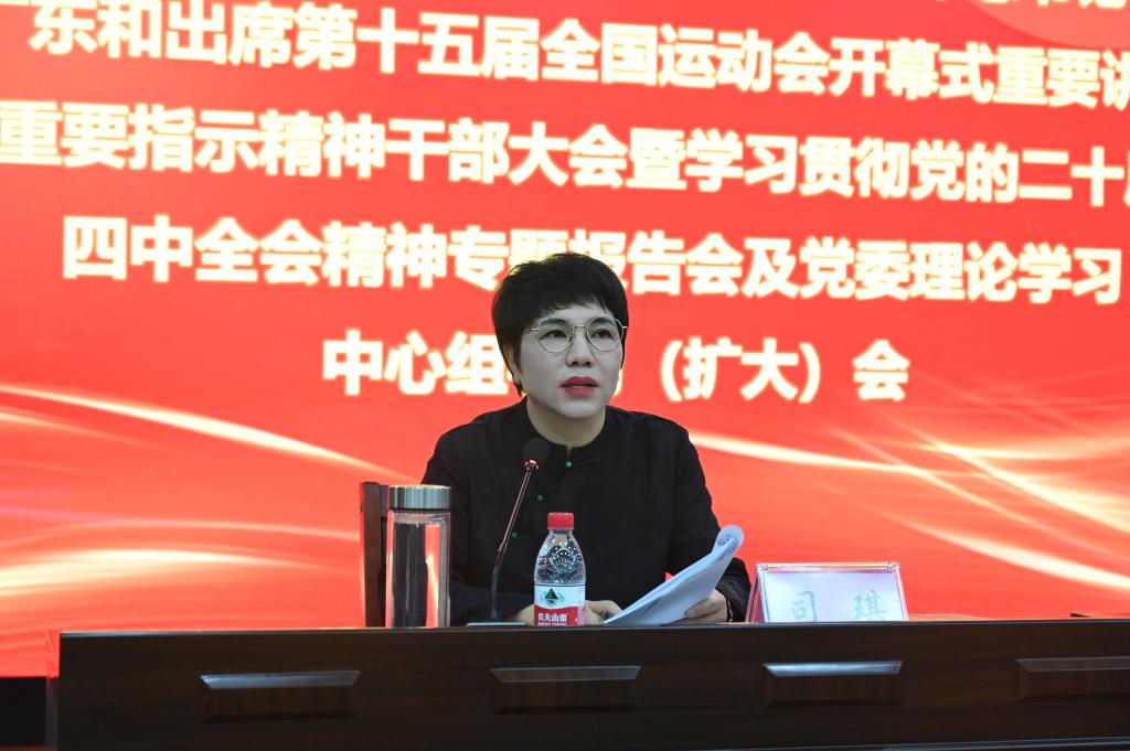 司琪书记指出,学习宣传贯彻习近平总书记重要讲话重要指示精神和党的二十届四中全会精神,是当前和今后一个时期的重大政治任务,要精心组织实施,持续掀起学习宣传贯彻热潮。要在“深学”上下功夫,要在“宣传”上求实效,在全校营造浓厚的学习氛围。