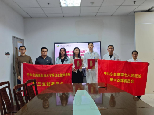 12月3日下午,我校卫生健康学院第三党支部教师党员及入党积极分子代表,走进东莞市第七人民医院,联合该院第六党支部开展以“党建领航聚合力,心身共护佑安康”为主题的党建结对共建活动。