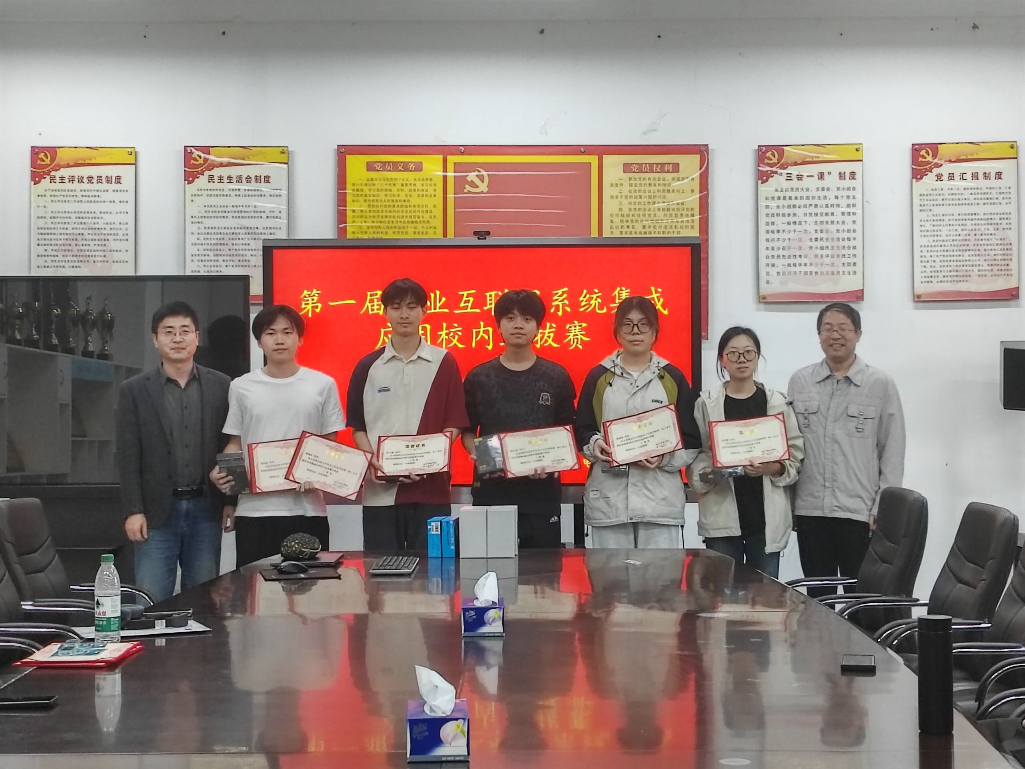 经过两个小时的激烈竞争,朱立强同学和余乐朗同学参赛队以优异的成绩获得一等奖,赛后电子信息学院副院长高龙和工业互联网技术专业主任郭轩为所有获奖学生颁发荣誉证书和奖品,并鼓励参赛学生在今后的学习中严格要求自己,发挥能吃苦能拼搏的精神,发挥带头作用,在后续的省赛中取得好成绩。