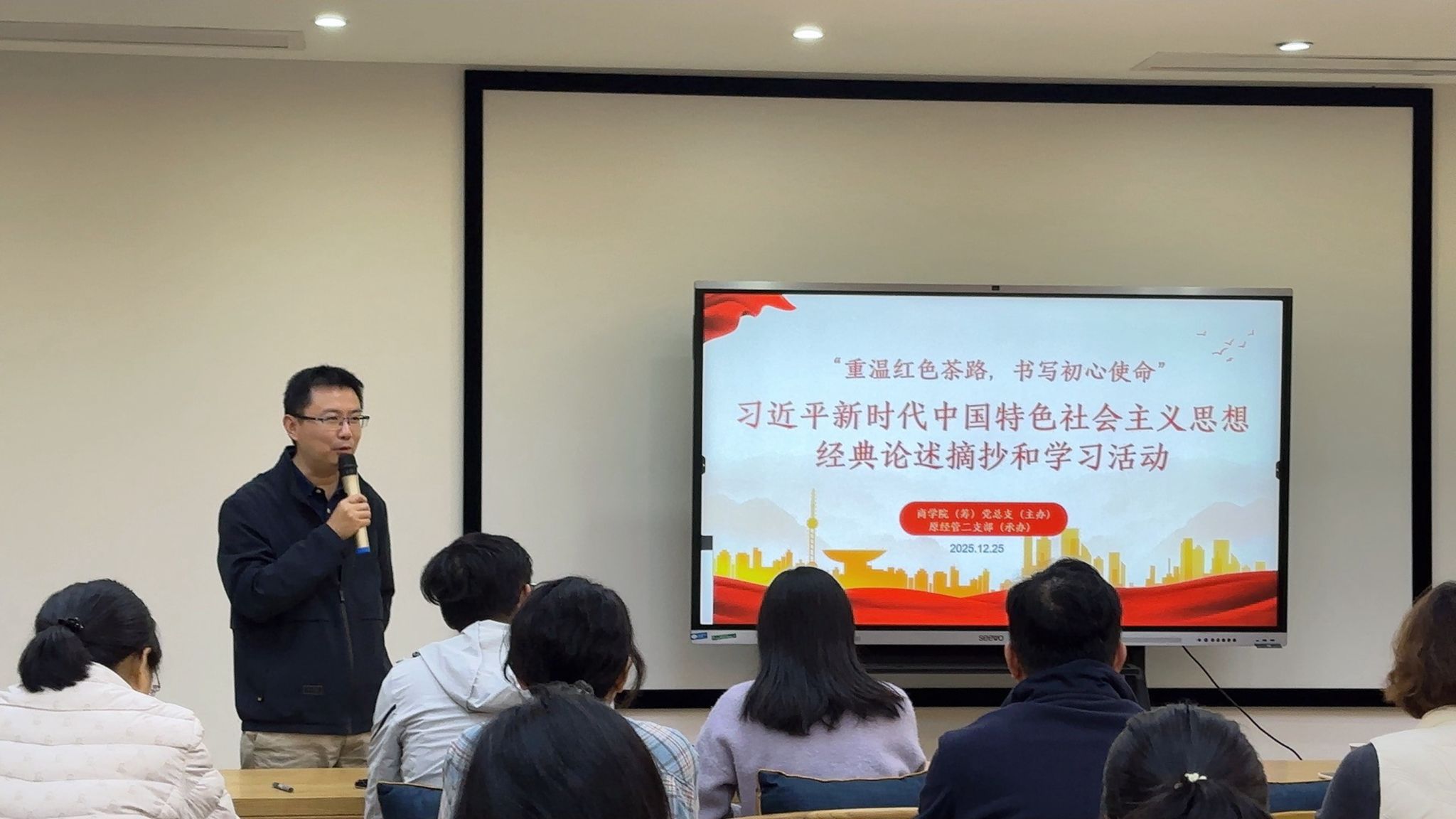 为持续强化新时代党的创新理论学习,12月25日,商学院(筹)党总支在图书馆传习馆举办以“重温红色茶路,书写初心使命”为主题学习活动,组织各支部党员及非党员教师代表近60人,通过“学、写、研、品”四位一体的沉浸式学习,在茶马古道红色文化中感悟党的创新精神。