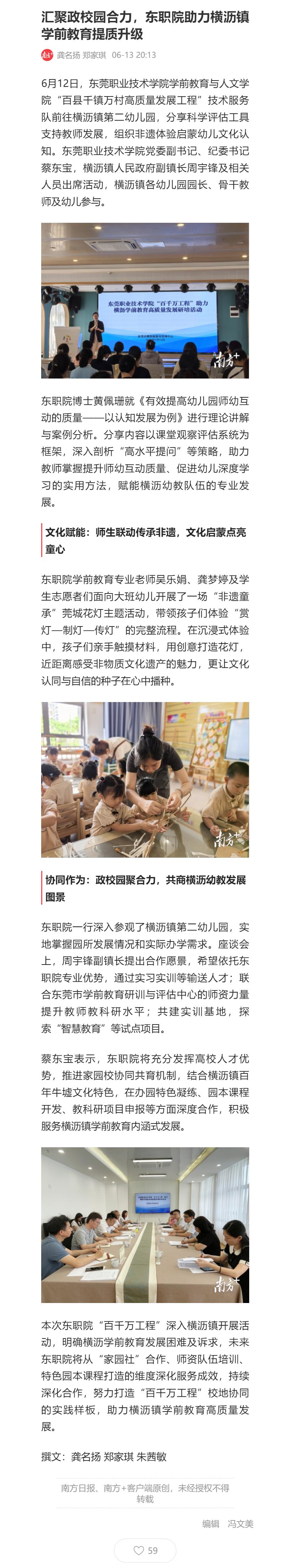 【南方+】汇聚政校园合力,东职院助力横沥镇学前教育提质升级