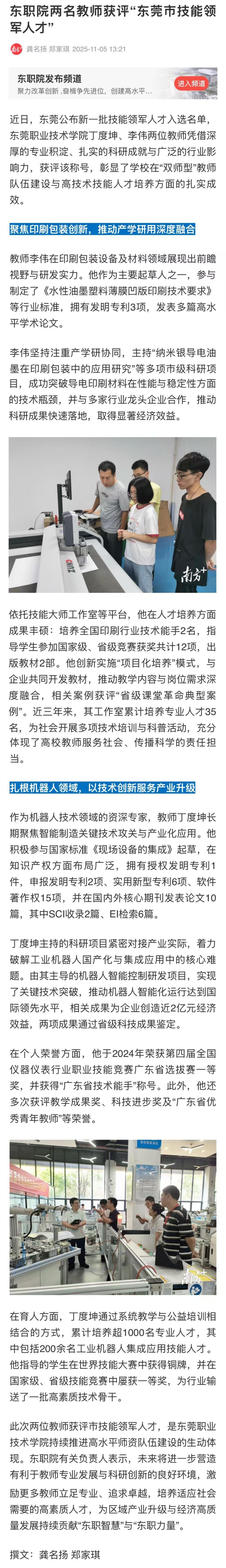 【南方+】东职院两名教师获评“东莞市技能领军人才”
