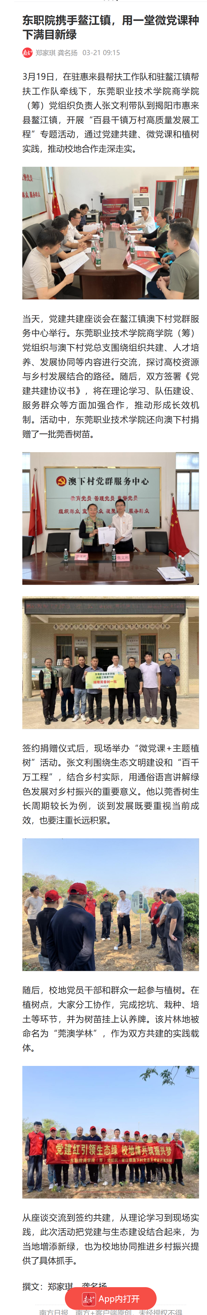【南方+】 东职院携手鳌江镇,用一堂微党课种下满目新绿